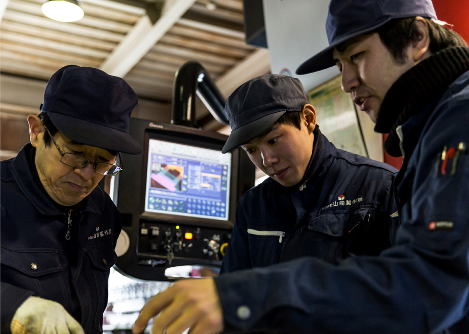 そして、山崎製作所は、技術が継承される会社です。 20代から70代までの技術者が現場でともに働き、熟練の技術を伝えています。